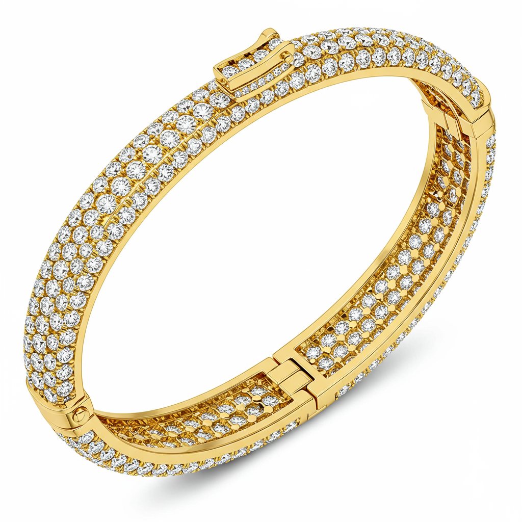 The Juste Un Clou Bracelet transforms an everyday object into a statement of rebellious elegance and modern luxury. Crafted in radiant 18KT yellow gold, this iconic cuff design wraps effortlessly around the wrist, symbolizing strength and uncompromising style. The surface is meticulously detailed and paved with brilliant diamonds, presenting a perfect fusion of industrial precision and high jewelry craftsmanship. It stands as a timeless piece for the connoisseur who appreciates both avant-garde form and flawless execution in their accessories. This bangle represents an enduring commitment to bold design.
