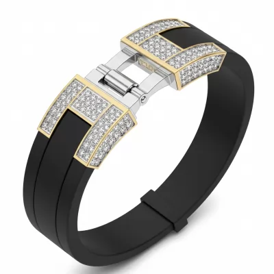 The 'rubber for bracelet' collection merges high-performance durability with exclusive luxury. This striking design features an 18KT white gold centerpiece, meticulously paved with VVS G-H diamonds, set against a resilient black rubber strap. Offering a modern, edgy aesthetic, this piece is engineered for comfort and daily wearability without compromising on sophisticated style. It represents the ultimate fusion of contemporary design and timeless material brilliance, perfect for the discerning individual who values innovation in their accessories.