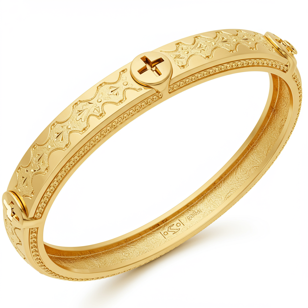 An iconic symbol of eternal commitment, this Screw Bracelet captures timeless sophistication. Expertly crafted in robust 18KT yellow gold, this hinged bangle features the signature screw motif across its surface, symbolizing unbreakable unity. The luxurious weight and flawless polish make it a statement piece suitable for daily wear or elevated evening ensembles. This piece seamlessly blends industrial strength with refined, high-jewelry elegance.