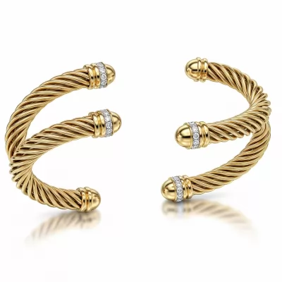 This iconic cable cuff bracelet reinterprets classic design with modern luxury. Sculpted 18KT gold forms the signature twisted helix, offering a dynamic and comfortable fit around the wrist. The terminals are meticulously paved with VVS clarity diamonds, adding breathtaking sparkle and contrast to the textured metalwork. This piece serves as a timeless statement, effortlessly transitioning from day wear to evening glamour, embodying sophisticated artistry.