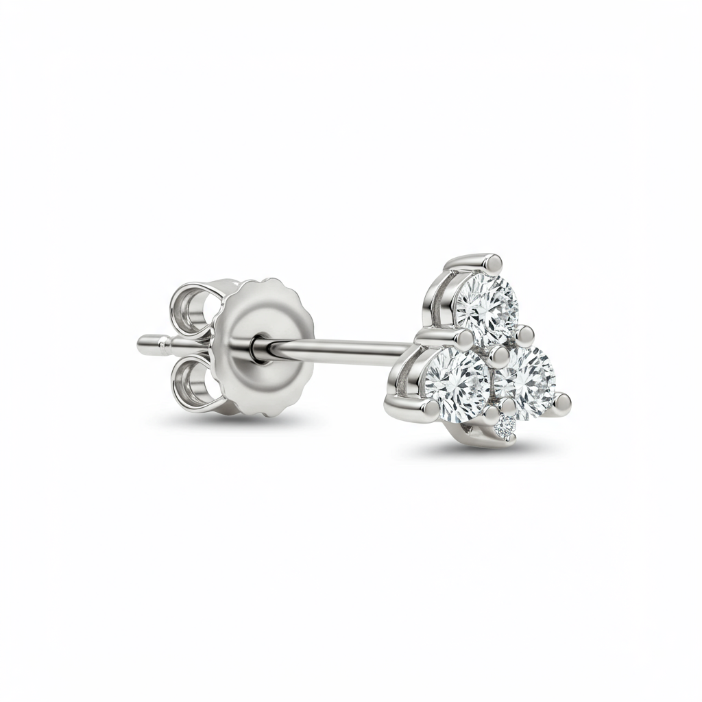 These delicate diamond cluster studs are perfectly sized to offer a subtle, timeless sparkle ideal for young wearers. Expertly crafted in radiant 18KT white gold, the minimalist design features three brilliant round diamonds securely set in each ear. The secure post back ensures maximum comfort and durability for continuous wear. These exquisite earrings serve as a perfect, cherished gift, embodying elegance and purity.