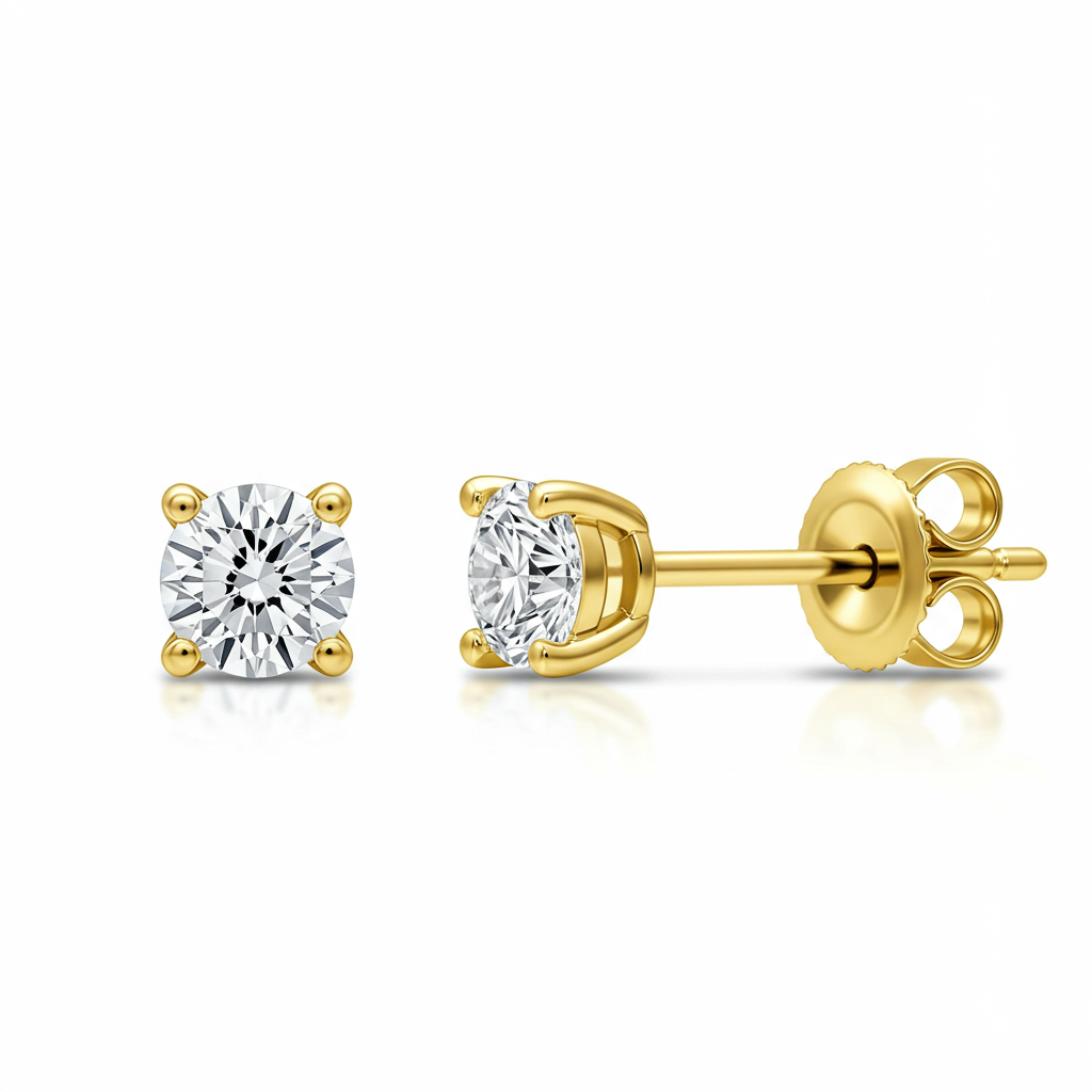 These classic gold stud earrings embody timeless elegance and sophisticated simplicity. Crafted in lustrous 18KT Yellow Gold, each piece features a magnificent round brilliant diamond secured in a secure four-prong setting. The minimal metal design ensures maximum light dispersion, highlighting the exceptional fire and brilliance of the stones. They offer versatile wearability, perfect for daily luxury or complementing evening attire. A true foundation piece for any discerning jewelry collection.