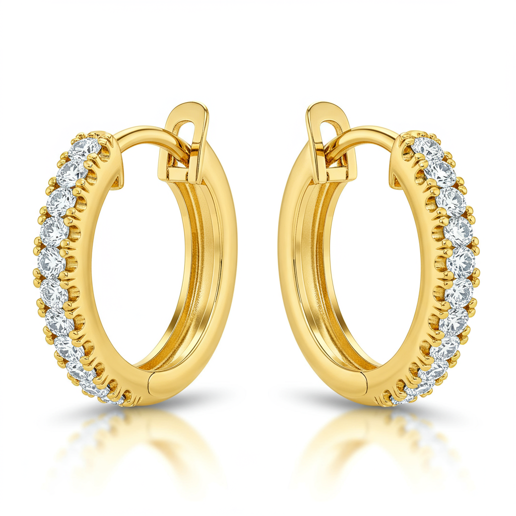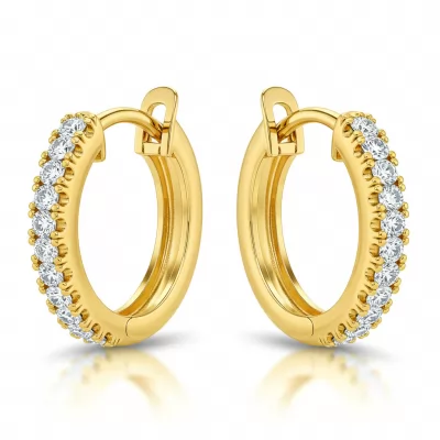 These stylish huggie hoop earrings offer understated elegance perfect for seamless daily wear. Crafted in rich 18KT yellow gold, their polished surface catches the light beautifully with every movement. A subtle line of micro-pave set VVS diamonds adds a delicate, persistent shimmer without overwhelming the design's simplicity. Secure hinged closures ensure superior comfort and safety, making them a foundational and essential piece in any modern jewelry collection.