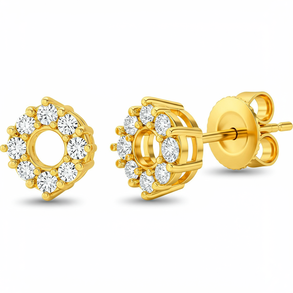 These elegant daily wear gold earrings are designed for enduring comfort and subtle sophistication. Crafted in brilliant 18KT yellow gold, they feature meticulously set high-clarity diamonds that capture light beautifully. Their lightweight structure ensures they are perfect for all-day wear, adding a touch of effortless glamour to any ensemble. A true staple piece, combining luxury and practicality.