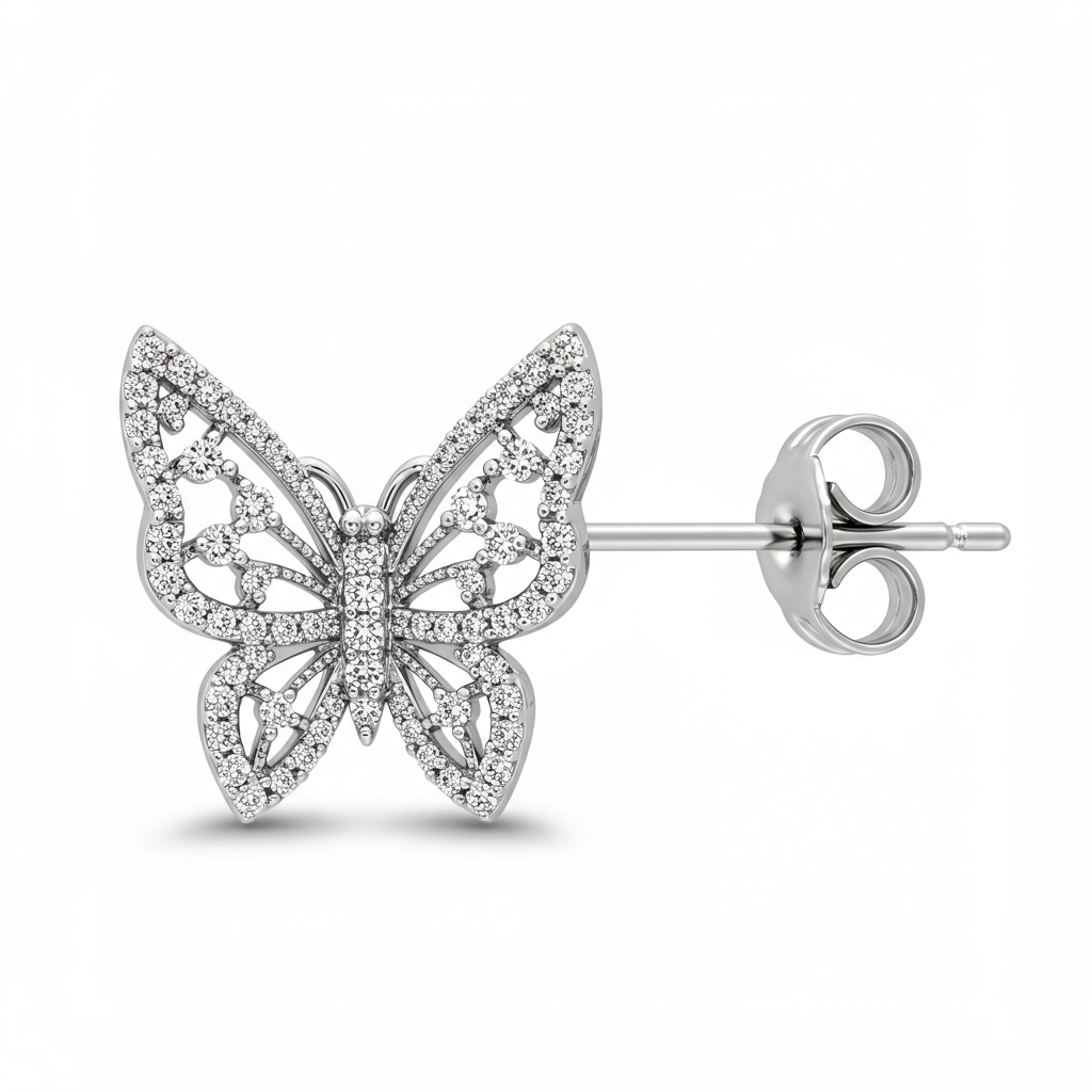 Capture the ephemeral beauty of nature with these magnificent Butterfly Pave Stud Earrings, expertly crafted in luminous 18KT white gold. Each wing is meticulously blanketed in high-clarity round diamonds, reflecting light from every angle to create a dazzling, lifelike effect. These earrings embody luxury and feminine grace, perfect for elevating any ensemble from daywear to sophisticated evening attire. The secure post backs ensure comfortable and worry-free wear, making them an instant heirloom piece. This design symbolizes transformation and hope, offering a timeless addition to any fine jewelry collection.