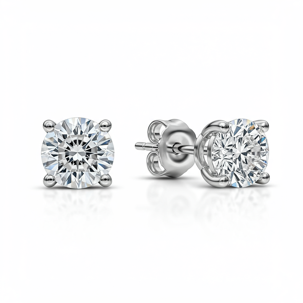 These classic diamond stud earrings offer essential brilliance and timeless elegance. Crafted in luxurious 18KT white gold, each earring holds a perfectly matched, exceptionally cut round diamond secured in a low-profile four-prong setting. Their VVS clarity ensures unparalleled fire and sparkle, making them suitable for everyday wear or sophisticated evening events. This pair is a foundation piece for any fine jewelry collection.