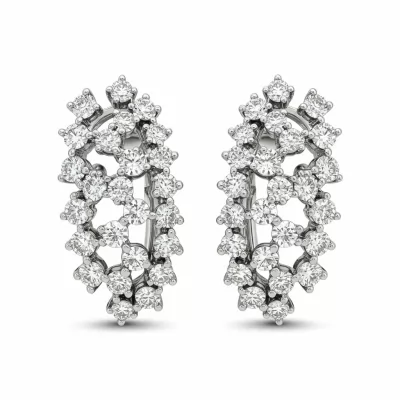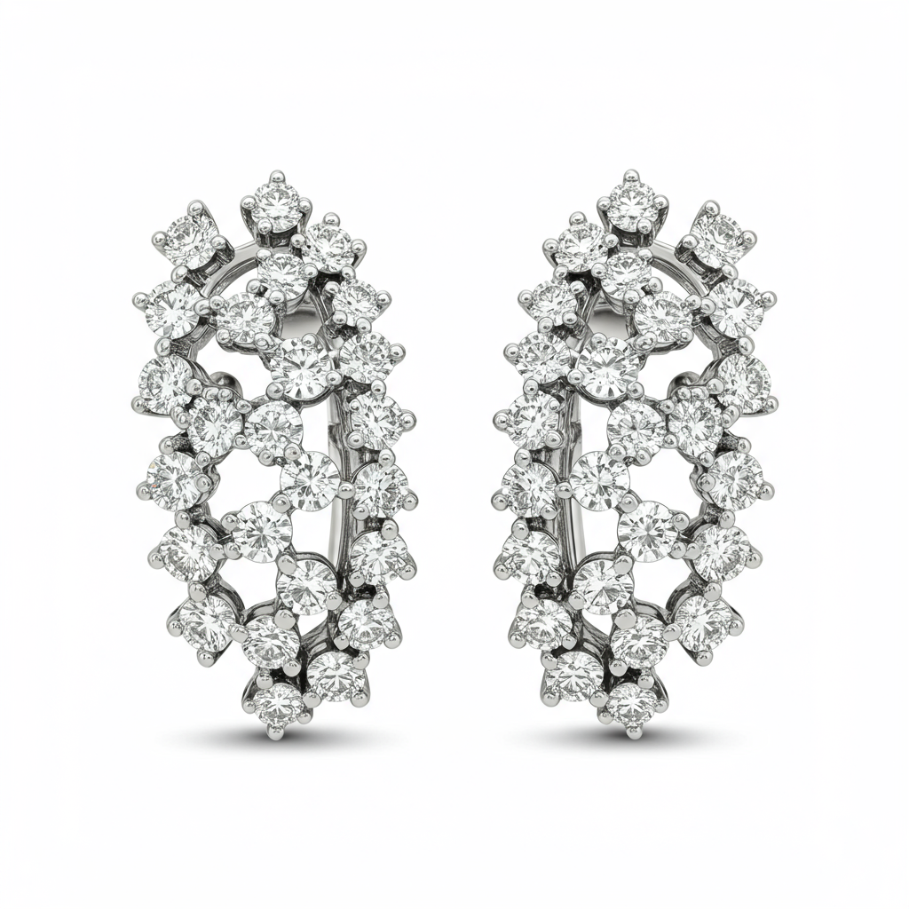 These contemporary ear cuff earrings offer a blend of modern edge and timeless luxury, meticulously crafted in radiant 18KT white gold. Designed to hug the curve of the ear without requiring a piercing, the surface is entirely embellished with brilliant pave diamonds. The sleek, sculptural form catches the light from every angle, creating a stunning waterfall of sparkle. This piece is the perfect accessory for transitioning from daytime elegance to evening glamour, embodying effortless high-fashion sophistication.