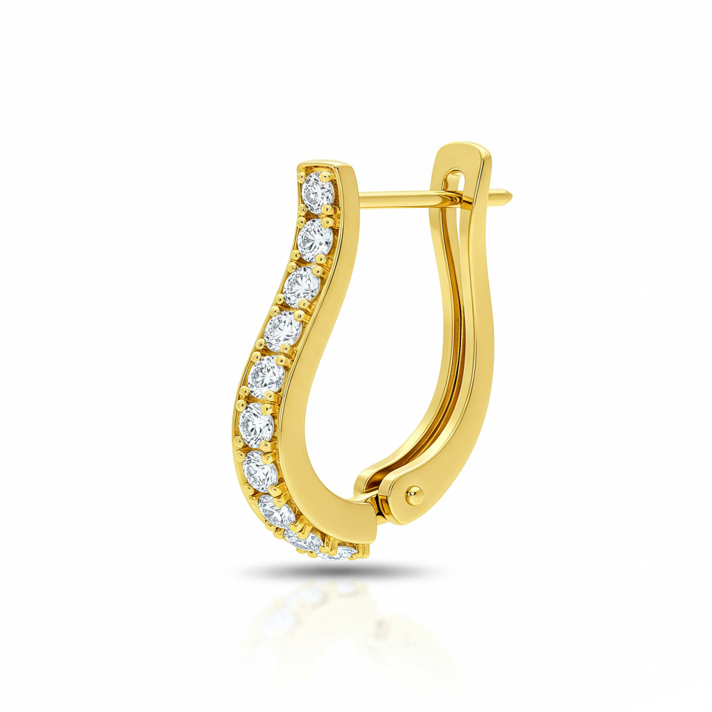 These exquisite drop earrings are crafted in luminous 18KT yellow gold, featuring an elegant, elongated silhouette designed for graceful movement. The design showcases a delicate linear arrangement of brilliant round diamonds set in a secure prong setting, maximizing light return and sparkle. A subtle articulation point ensures captivating motion with every turn of the head. Perfect for both sophisticated evening wear and elevating daily attire, these earrings are a timeless investment in luxury.