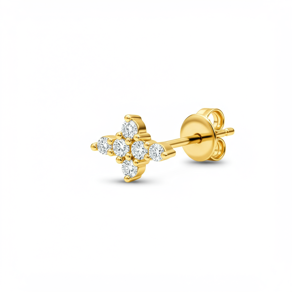 Introducing the 'one gram gold earrings,' a masterpiece of minimalist luxury designed for effortless everyday wear. Crafted in radiant 18KT yellow gold, these delicate studs offer timeless elegance without the substantial weight. Each earring features a subtle arrangement of ten high-quality VVS accent diamonds, lending a brilliant sparkle to this remarkably lightweight piece. They represent the perfect fusion of classic style and modern wearability, ideal for the discerning individual seeking understated glamour and impeccable craftsmanship.