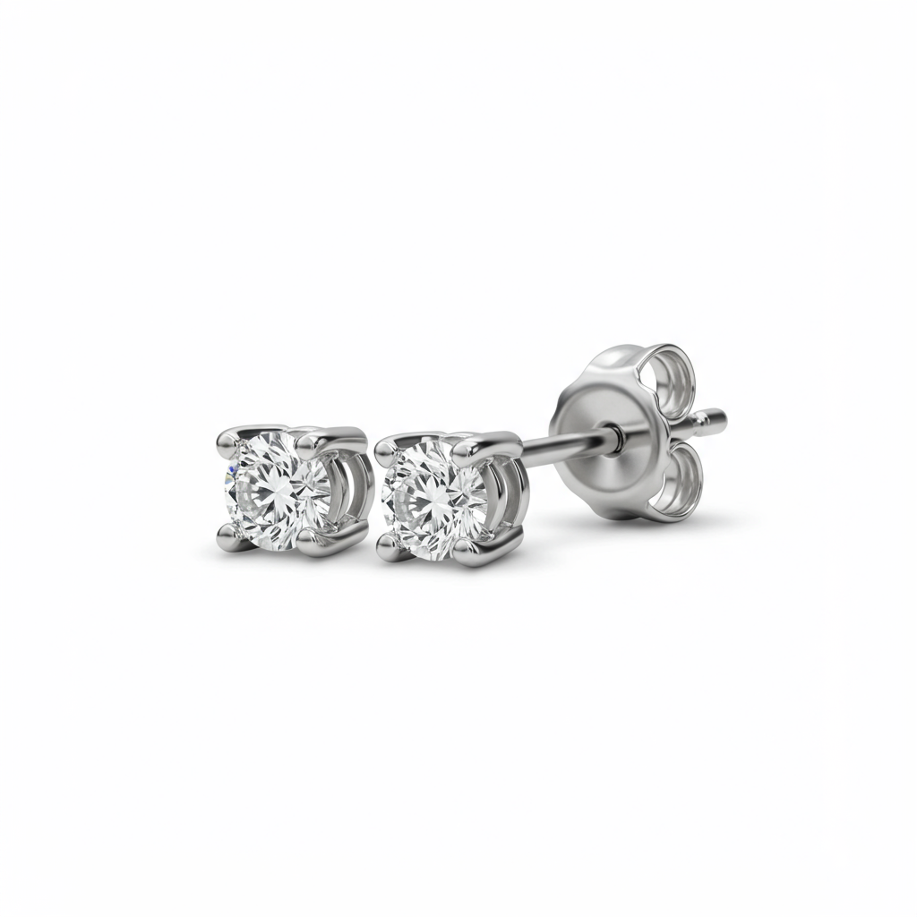 These delicate stud earrings are perfectly sized for young wearers, offering a timeless yet subtle sparkle. Crafted in lustrous 18KT white gold, each earring features a brilliant round cut diamond set securely in a minimal prong setting. Their lightweight design ensures maximum comfort and secure wear, making them an ideal first piece of fine jewelry. They are the ultimate expression of subtle elegance for any special occasion or daily use.