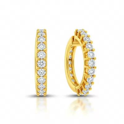 These exquisite Malabar Gold Earrings redefine classic elegance through modern micro-pave techniques. Crafted in brilliant 18KT yellow gold, the delicate hoop design features a mesmerizing array of VVS diamonds that capture light from every angle. The meticulous setting ensures maximum sparkle, creating a luxurious statement piece perfect for sophisticated evening wear or daily grandeur. These earrings are a testament to superior craftsmanship and timeless design heritage.