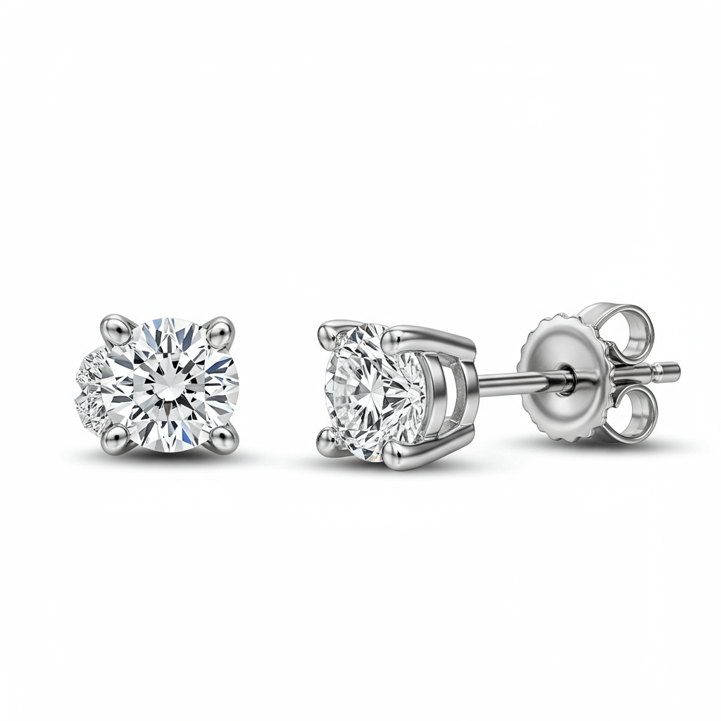 These exquisite small earrings define everyday elegance and timeless luxury. Featuring perfectly matched VVS Round Brilliant diamonds secured in a minimalist 18KT white gold setting, they offer unparalleled sparkle. Their compact yet radiant design makes them an essential staple for any sophisticated collection, transitioning effortlessly from day wear to evening glamour. The secure screw-back mechanism ensures lasting comfort and security, making them perfect for lifelong enjoyment.