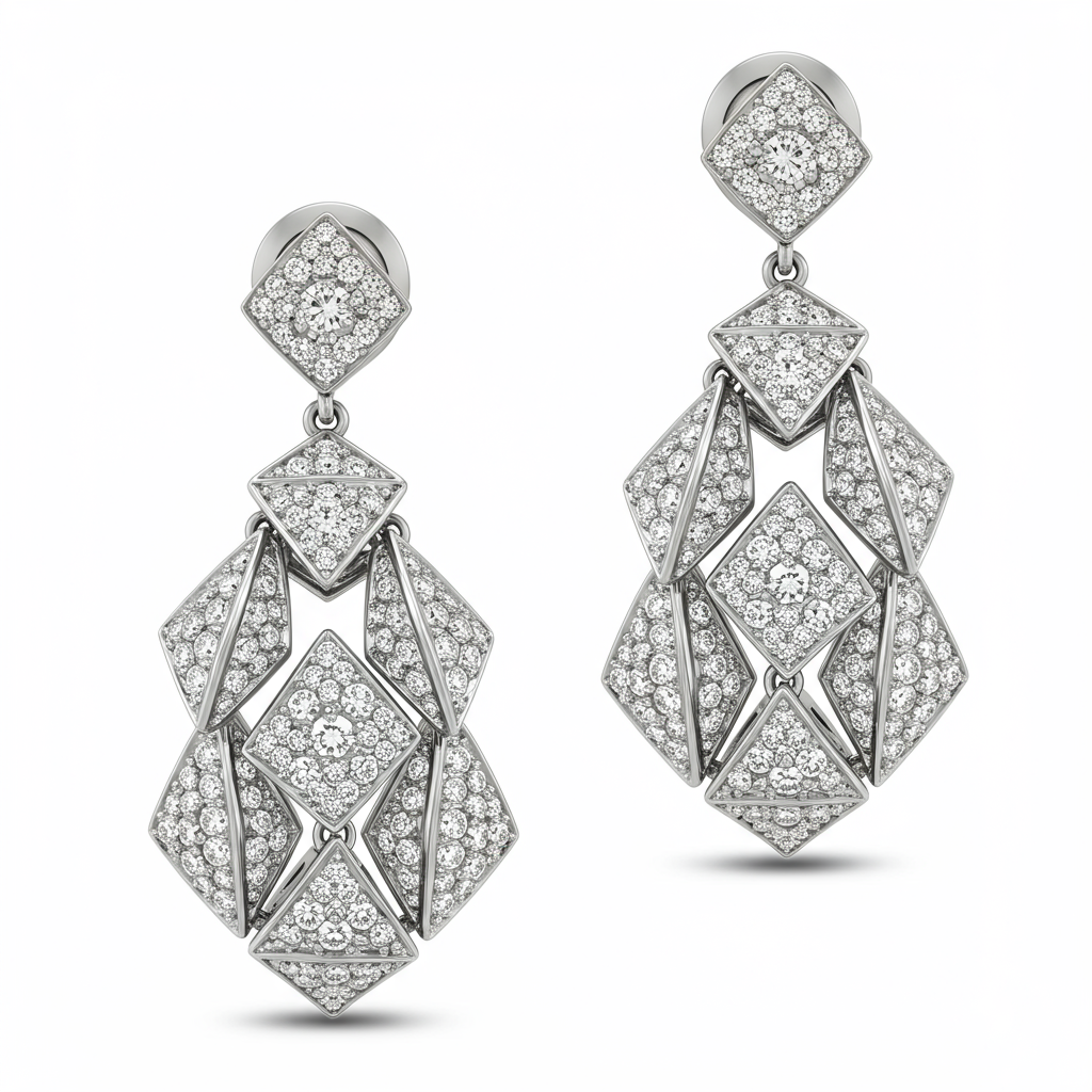 These exquisite diamond dangle earrings capture movement and light with unparalleled grace. Crafted in luminous 18KT white gold, the delicate articulation ensures maximum sparkle from every angle. Each drop features meticulously set VVS diamonds, creating a cascading river of brilliance. They are the quintessential accessory for evening wear or adding a sophisticated touch to daily luxury. This pair is designed for secure, comfortable long-term wear.