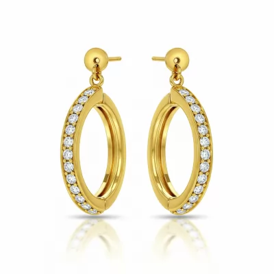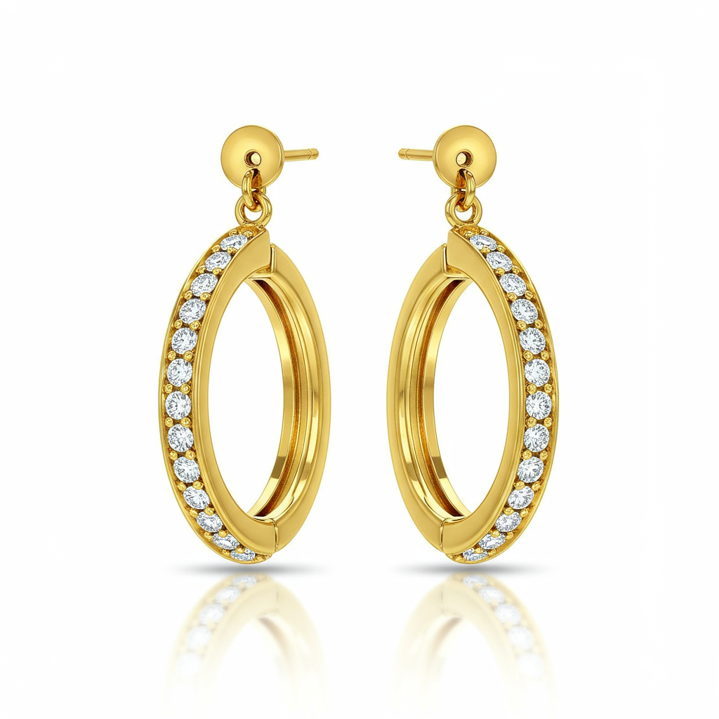 These elegant drop hoop earrings redefine modern luxury with their fluid silhouette and dazzling diamond accents. Crafted meticulously in 18KT yellow gold, the design features a seamless row of brilliant round diamonds set in a secure pave style. The delicate curvature ensures maximum light reflection, delivering sparkle from every angle. This versatile piece transitions effortlessly from daywear sophistication to evening glamour, making it a timeless addition to any fine jewelry collection.