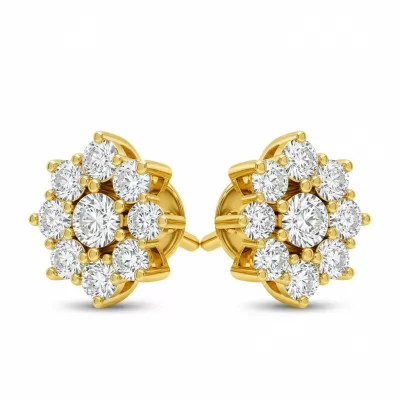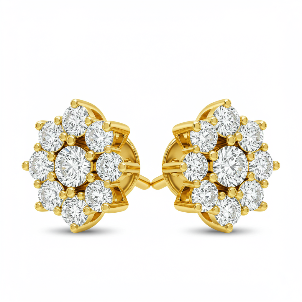 These exquisite 3 gram gold earrings are designed for effortless everyday elegance, offering maximum sparkle in a lightweight package. Crafted in luxurious 18KT yellow gold, they feature a delicate cluster of brilliant VVS round diamonds. The timeless design ensures versatile wearability, transitioning seamlessly from office wear to evening casuals. They are the perfect investment piece, balancing durable quality with undeniable charm and sophistication.