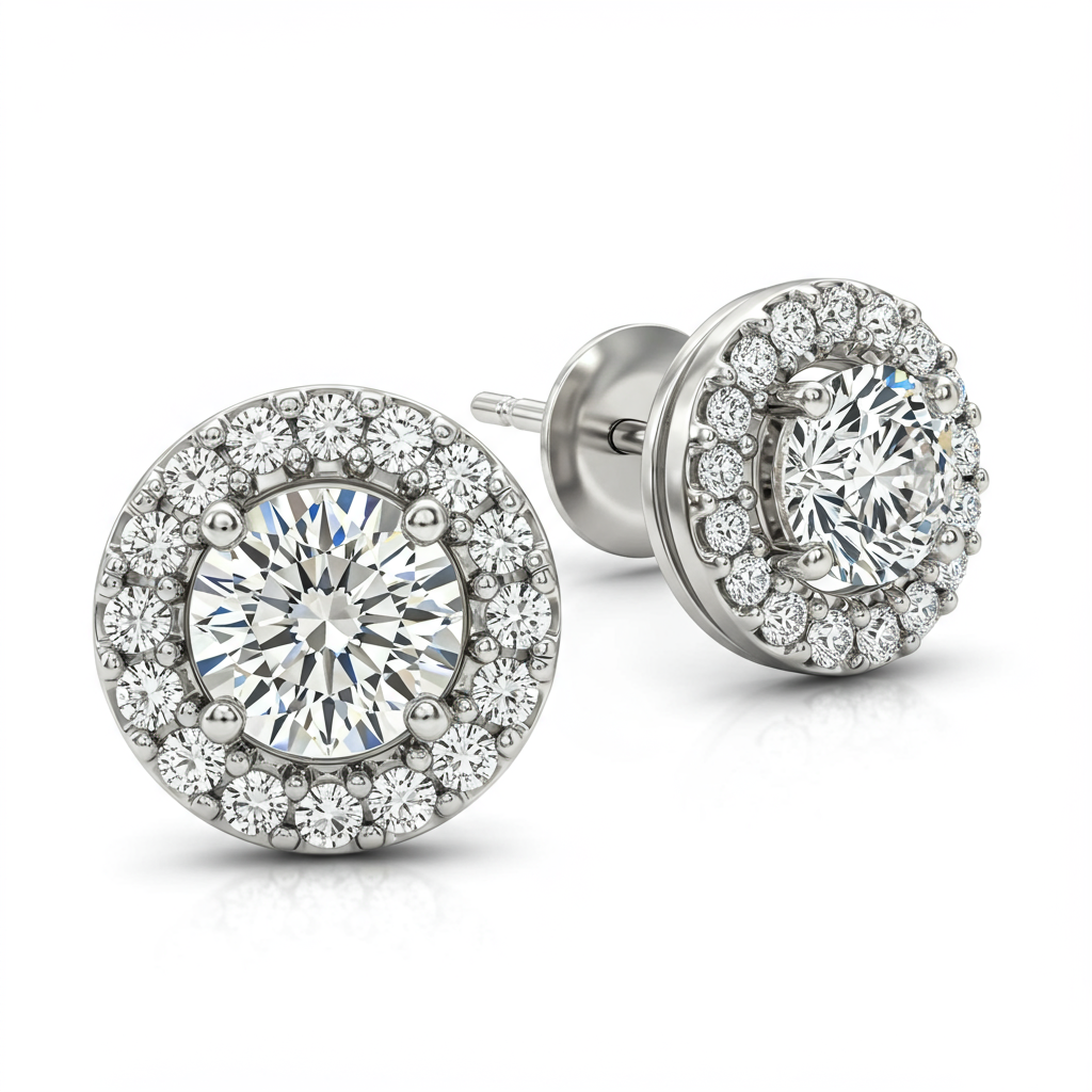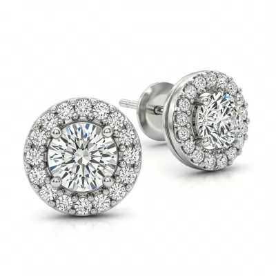 These exquisite American Diamond Halo Stud Earrings capture vintage grandeur with modern precision. Crafted in lustrous 18KT white gold, a brilliant central diamond is encircled by a dazzling halo of micropavé accents. The intricate setting ensures maximum light reflection, delivering breathtaking sparkle reminiscent of classic Hollywood glamour. They are perfect for elevating evening wear or adding perpetual luxury to daily attire, embodying timeless sophistication.