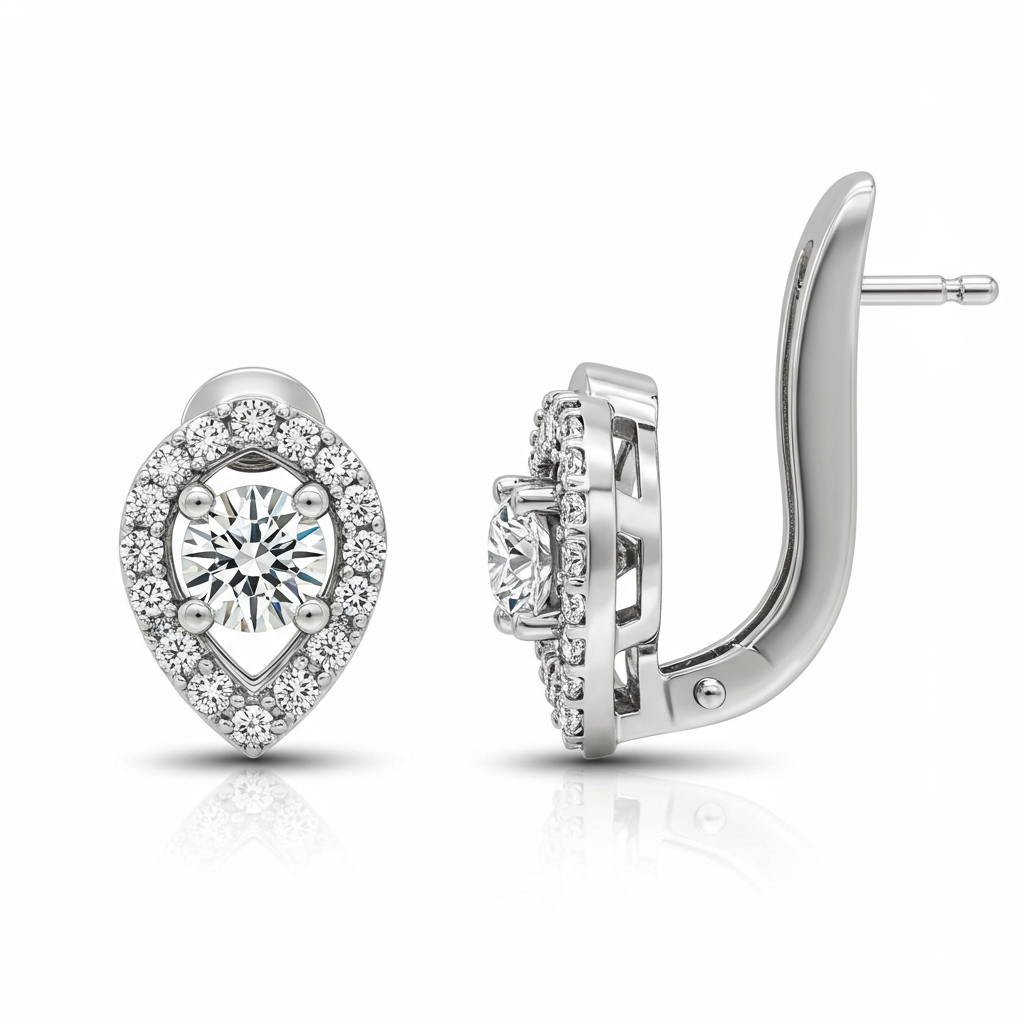 Elevate your everyday style with these exquisite daily wear earrings, designed for effortless sophistication. Crafted in brilliant 18KT white gold, the delicate leverback mechanism ensures both security and comfort. Each earring showcases a flawless center VVS round brilliant diamond, surrounded by subtle micro-pave detailing. These timeless studs offer the perfect blend of brilliance and enduring quality, making them an indispensable addition to any fine jewelry collection.