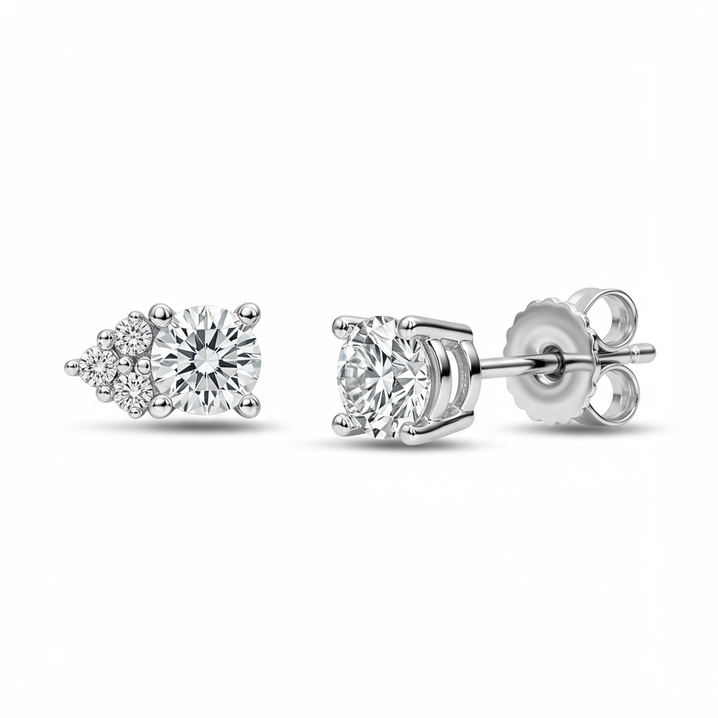 These classic diamond solitaire studs embody timeless elegance and sophisticated luxury. Crafted in radiant 18KT white gold, they feature impeccably cut VVS diamonds, delivering extraordinary brilliance with every turn of the head. The meticulous four-prong setting ensures maximum light performance, making these earrings a perfect choice for both daily wear and glamorous evening events. They are a definitive staple piece for any high-jewelry collection.