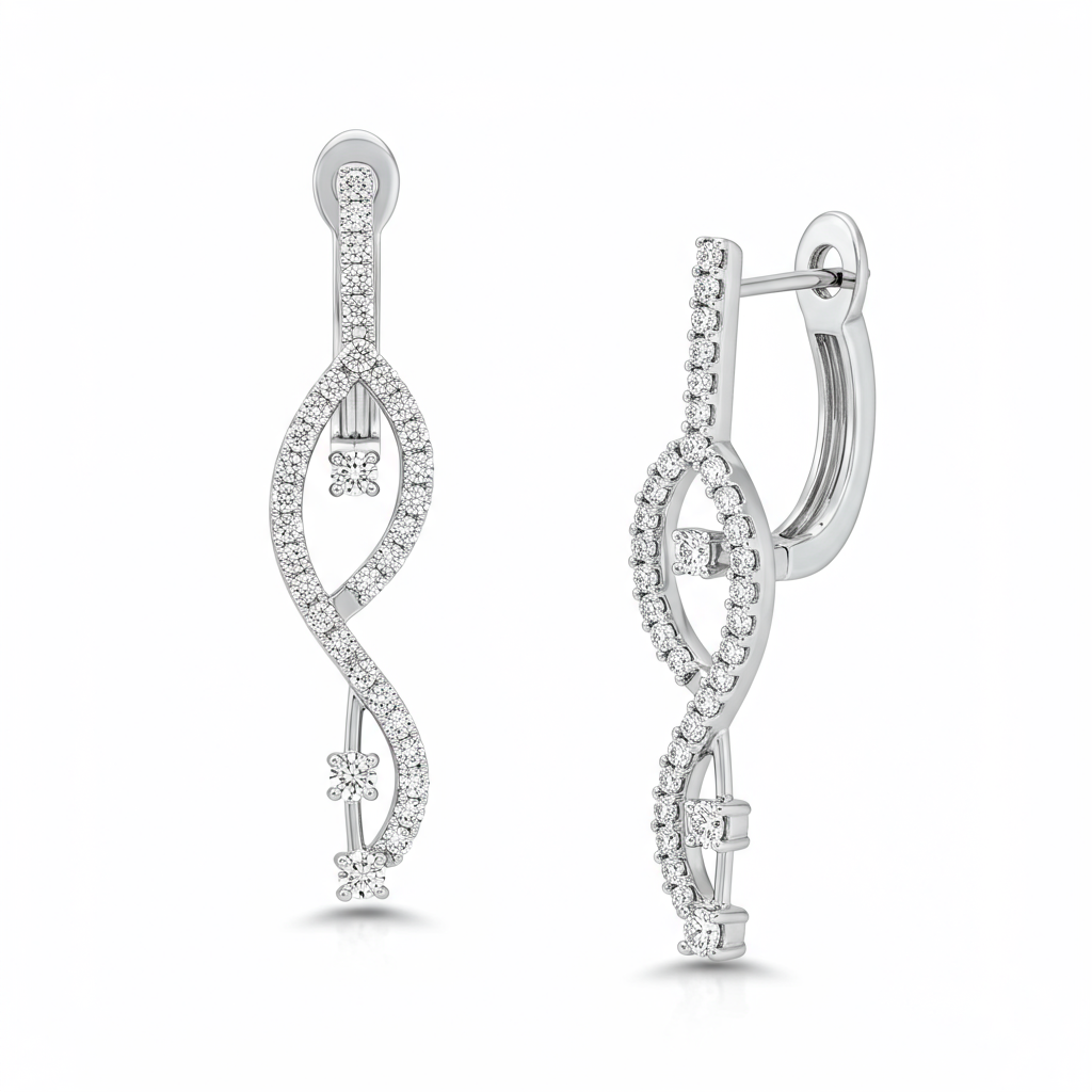 These modern diamond drop earrings redefine contemporary elegance with their sculptural lines and brilliant sparkle. Crafted in sleek 18KT white gold, the design features an innovative geometric arrangement of flawless diamonds. The articulation allows the earrings to catch the light from every angle, ensuring a dynamic display of fire and brilliance. Perfect for high-fashion events or elevating everyday attire, these earrings are a testament to superior craftsmanship and modern style.