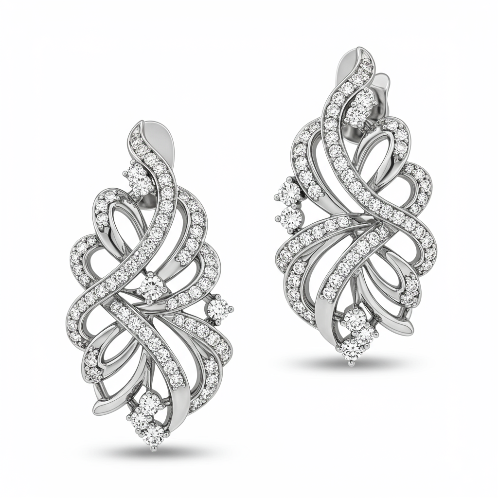 These exquisite designer stud earrings embody timeless elegance and sophisticated luxury. Crafted in radiant 18KT white gold, the signature motif is meticulously outlined with brilliant pavé-set VVS diamonds. The piece features perfectly matched central diamonds, offering unparalleled fire and brilliance. This pair serves as the ultimate statement of refined taste for any formal occasion or daily elegance.