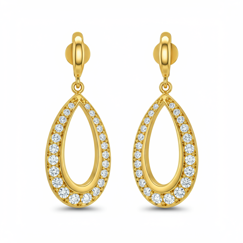 These exquisite gold plated earrings embody timeless sophistication, featuring a delicately curved profile designed to catch the light. The surface is meticulously adorned with brilliant round diamonds, enhancing their luxurious aesthetic. Crafted with precision in 18K yellow gold, they offer a comfortable and secure fit, making them ideal for high-end events or daily elegance. The stunning finish ensures durability while providing the warm glow of classic yellow gold plating.