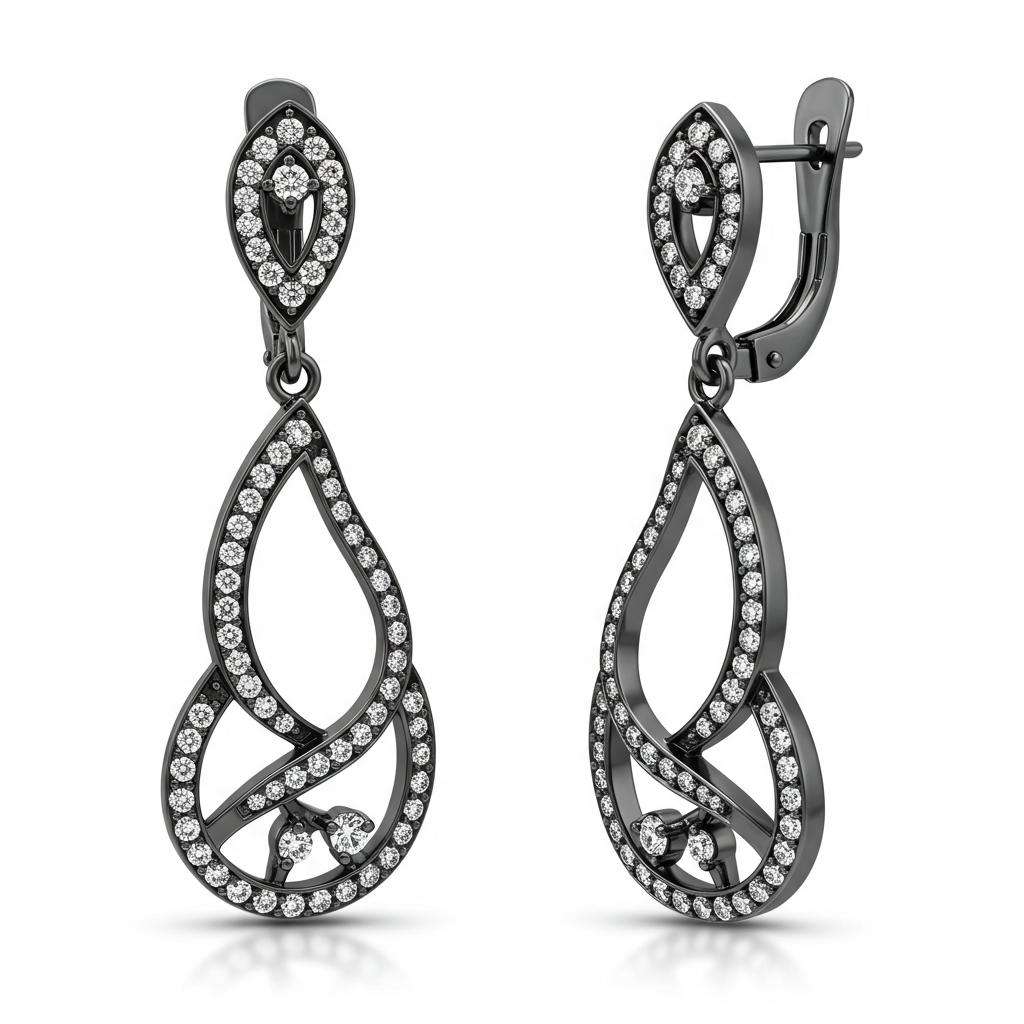 These striking oxidised silver drop earrings embody a dark, modern luxury, showcasing exquisite craftsmanship. The blackened sterling metal provides a dramatic backdrop, allowing the brilliant micro-pave diamonds to truly ignite. Featuring an elongated geometric silhouette, they offer sophisticated movement and undeniable elegance. This unique pair is designed for the discerning individual seeking statement jewelry that transcends conventional brilliance.