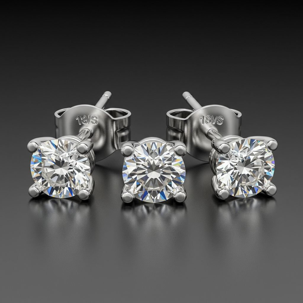 These exquisite round solitaire earrings embody timeless elegance and brilliance. Crafted in lustrous 18KT white gold, each stud features a meticulously cut VVS clarity diamond, chosen for its unparalleled fire and light performance. The secure four-prong setting maximizes the stone's exposure, ensuring magnificent sparkle from every angle. Perfect for everyday luxury or a formal statement, these earrings are essential additions to any sophisticated collection.