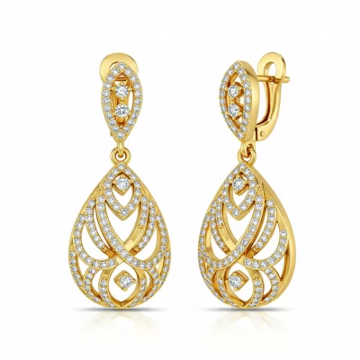 These exquisite senco gold earrings embody timeless elegance and modern craftsmanship. Crafted in luminous 18KT yellow gold, they feature a delicate drop design that catches the light beautifully. Each earring is meticulously set with brilliant VVS diamonds, creating a cascade of unparalleled sparkle. Perfect for elevating evening wear or adding sophistication to daily ensembles, these earrings are a testament to luxury jewelry design.
