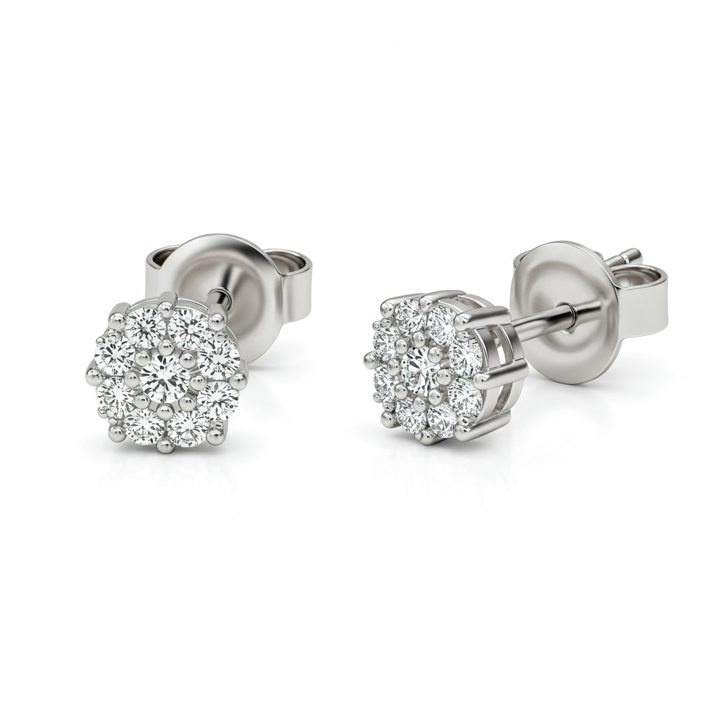 These classic stud earrings offer an immediate lift of understated elegance, perfect for daily wear or pairing with other jewelry. Crafted in radiant 18KT white gold, they feature brilliant round-cut diamonds set meticulously in a micro-pave style to maximize light return. The minimalist design ensures timeless versatility, making them an essential addition to any fine jewelry collection. Secure butterfly backings provide comfort and confidence throughout the day.
