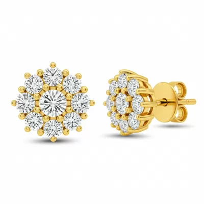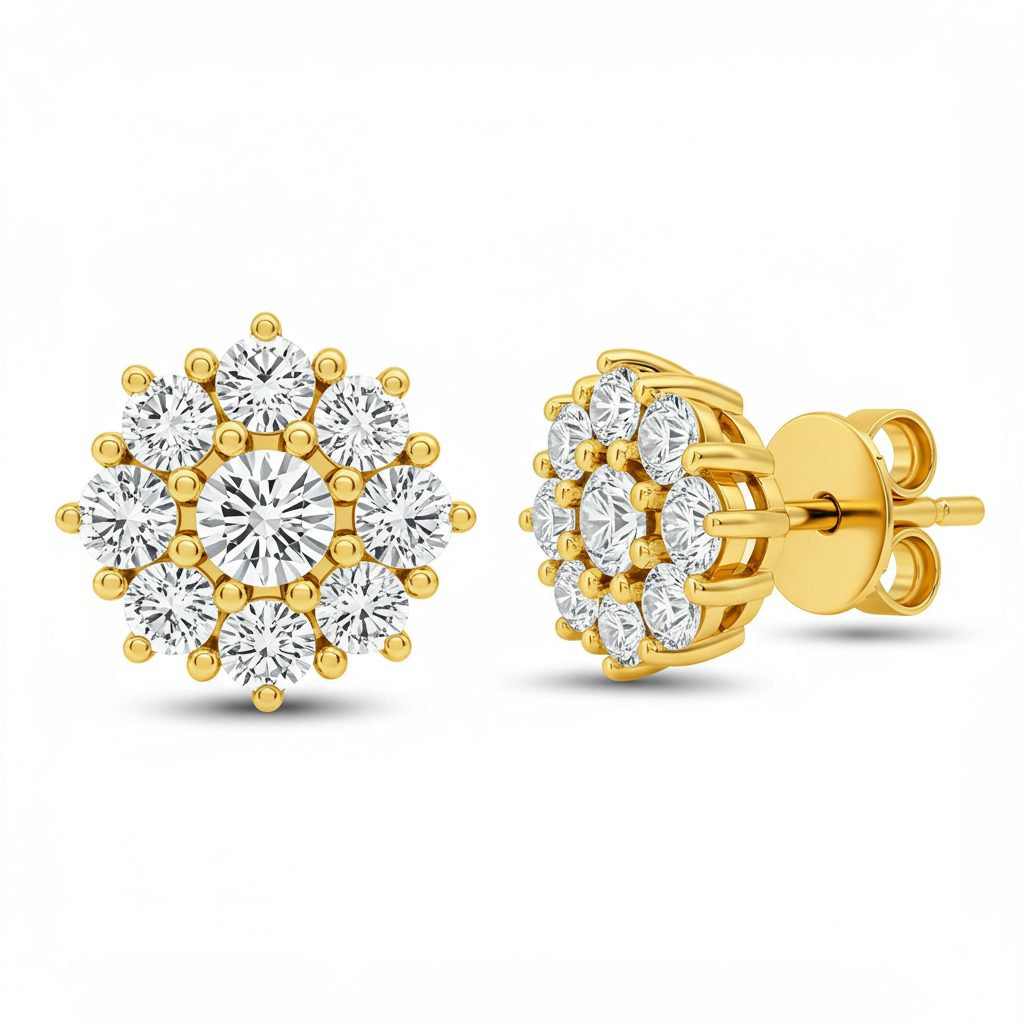 Experience understated elegance with these exquisite 18KT yellow gold studs, perfectly balanced for daily wear. Weighing approximately two grams, these earrings offer significant style without the heaviness. Each piece is meticulously crafted, featuring a subtle cluster design that captures light beautifully. Their secure, comfortable backing ensures they remain a treasured part of your collection for years to come, offering affordable luxury and timeless appeal.