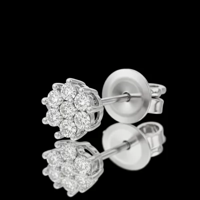 These charming 18KT white gold diamond earrings are specially designed for young girls, offering subtle sparkle perfect for everyday wear or special occasions. Each earring features a delicate cluster of brilliant VVS diamonds, meticulously set to maximize light reflection. The secure screw-back mechanism ensures comfort and peace of mind, making them safe for daily use. A timeless piece celebrating youthful elegance and sophistication.
