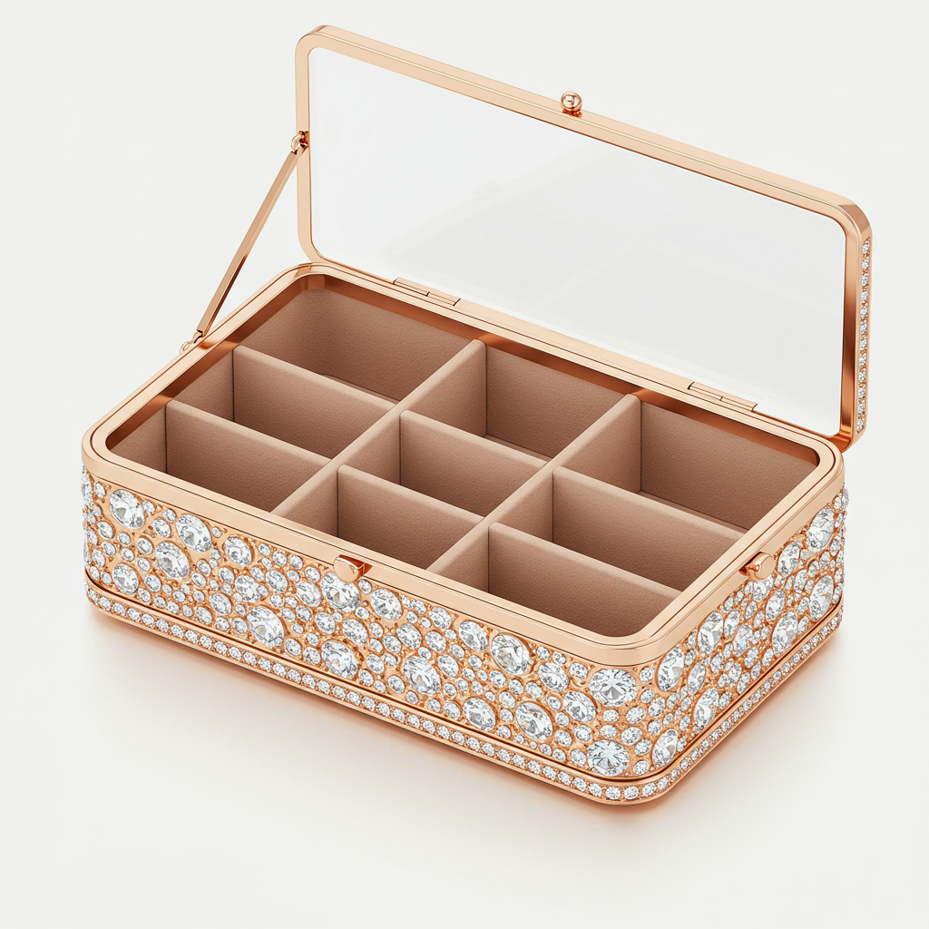 The JewelGravity Earring Organizer is the ultimate fusion of utility and opulent design, crafted for the discerning collector. This organizer features an 18KT Rose Gold structure accented with brilliant VVS quality diamonds, offering a stunning display solution for your finest studs and drops. The interior boasts smooth velvet lining and innovative suspension systems, ensuring every pair is protected and impeccably showcased. Its robust, architectural design transforms your vanity into a personal gallery, combining security with breathtaking presentation.