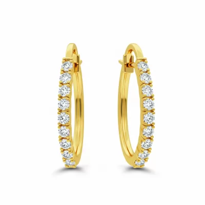 These elegant, light weight gold earrings offer a perfect blend of modern minimalism and timeless sophistication. Crafted in brilliant 18KT yellow gold, the delicate design ensures supreme comfort for all-day wear. The high-polish metal surface catches the light beautifully, complemented by subtle VVS diamond accents for a refined sparkle. This pair is an essential addition to any jewelry collection, ideal for effortless daily styling or enhancing professional attire.