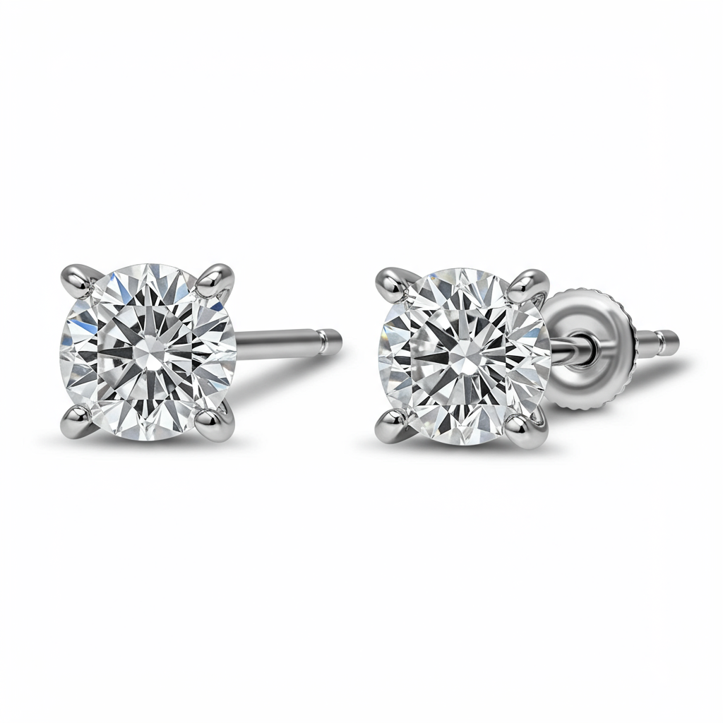 These small stud earrings redefine everyday elegance with their flawless simplicity. Each earring features a brilliant round diamond held securely in a classic four-prong setting, maximizing light return and scintillation. Crafted in lustrous 18KT white gold, the minimalist design ensures comfortable wear while providing maximum sparkle. They are an essential cornerstone piece for any sophisticated jewelry collection, perfect for daily wear or layering.