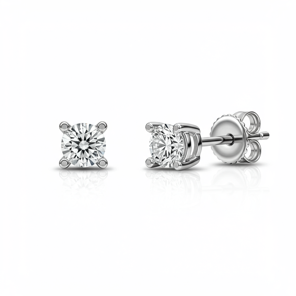 These exquisite stud earrings are the perfect introduction to fine jewelry for young wearers. Crafted in shimmering 18KT white gold, each earring features a dazzling VVS round brilliant diamond secured in a secure, low-profile four-prong setting. Designed for comfort and durability, these timeless pieces offer spectacular brilliance that captures the light with every movement. This elegant pair makes a cherished gift that embodies purity and sophistication for any special occasion.