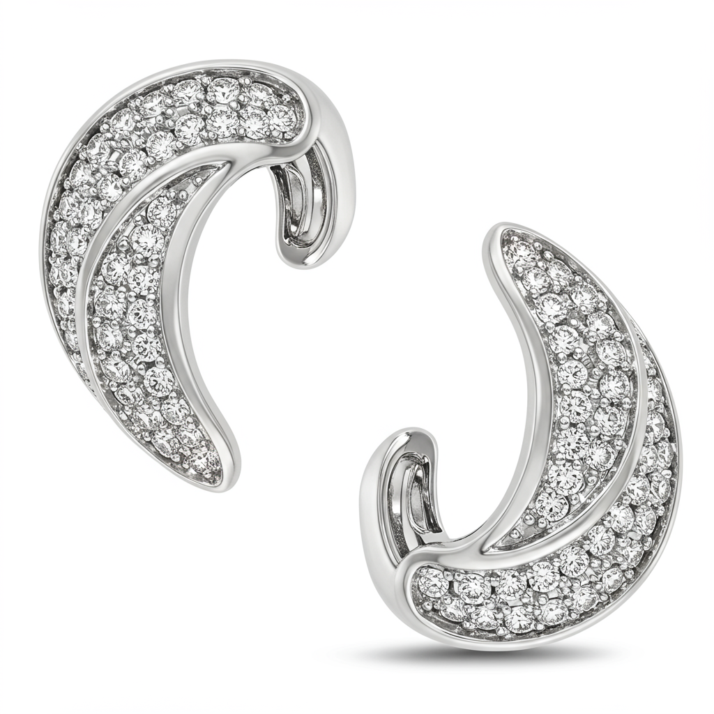 These exquisite cuff earrings redefine modern elegance, wrapping the earlobe in a brilliant stream of light. Crafted in radiant 18KT white gold, the design features a seamless row of prong-set VVS diamonds. They offer a secure and comfortable fit, providing the illusion of multiple piercings without the commitment. This piece serves as the perfect minimalist statement for both day and evening wear, showcasing unparalleled craftsmanship and sparkle.
