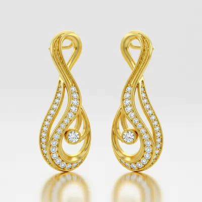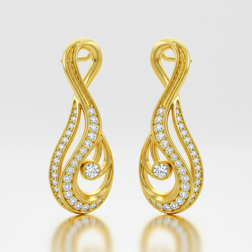 These exquisite drop earrings redefine modern luxury with their sweeping golden curves and brilliant diamond accents. Crafted in radiant 18KT Yellow Gold, the fluid, contemporary design ensures comfortable wear while maximizing sparkle. Each earring is meticulously set with high-quality VVS diamonds that catch the light from every angle. Perfect for elevating evening wear or adding sophisticated brilliance to daily ensembles, these pieces are a timeless investment.