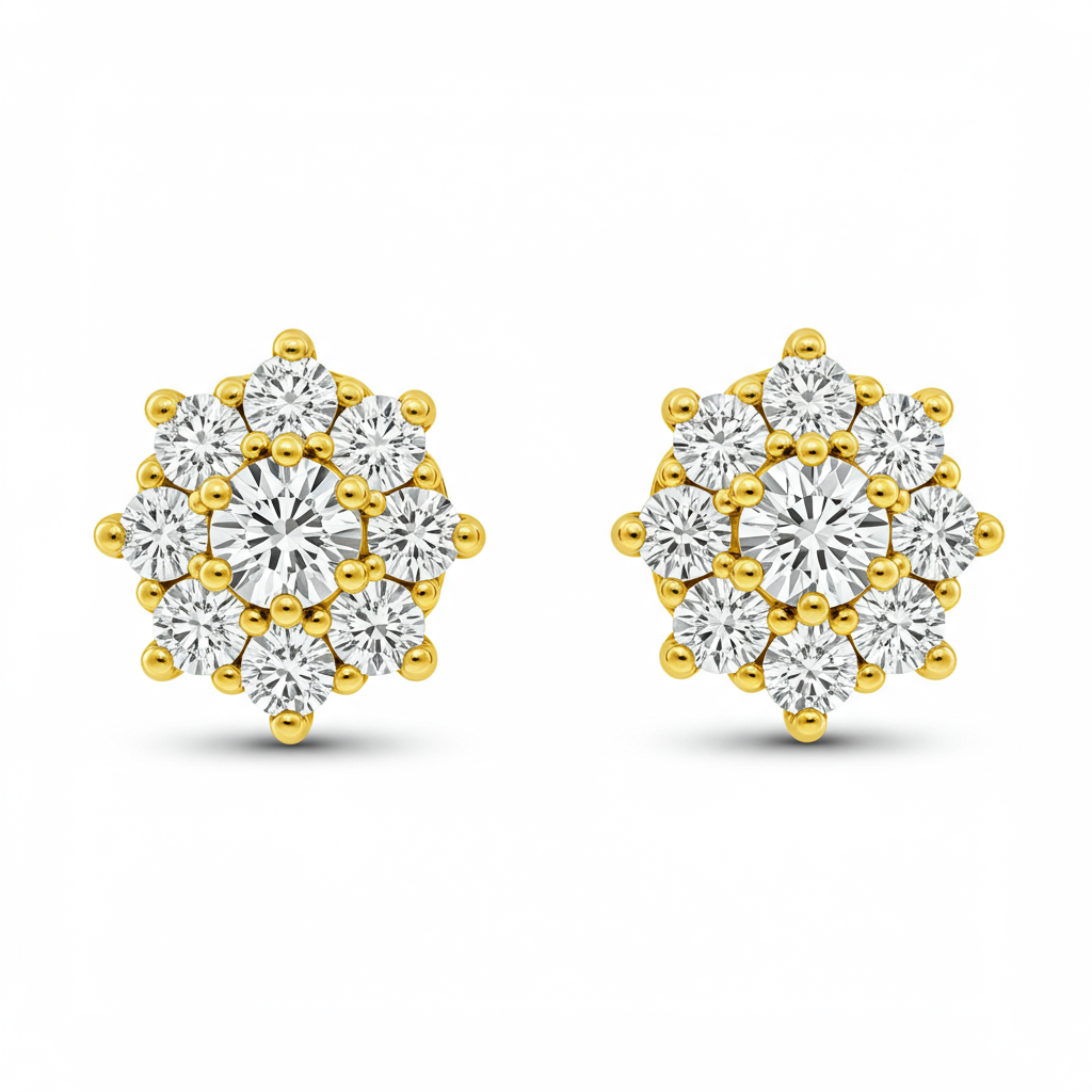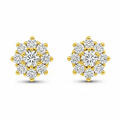 These elegant gold earrings tops are meticulously crafted in radiant 18KT yellow gold, offering a versatile design suitable for any occasion. Featuring a brilliant cluster setting of high-quality VVS round diamonds, they deliver unmatched sparkle and sophistication. The timeless silhouette ensures maximum light reflection, enhancing the overall brilliance of the piece. This design is a true staple of refined luxury, perfect for both daily wear and adding subtle glamour to evening attire.