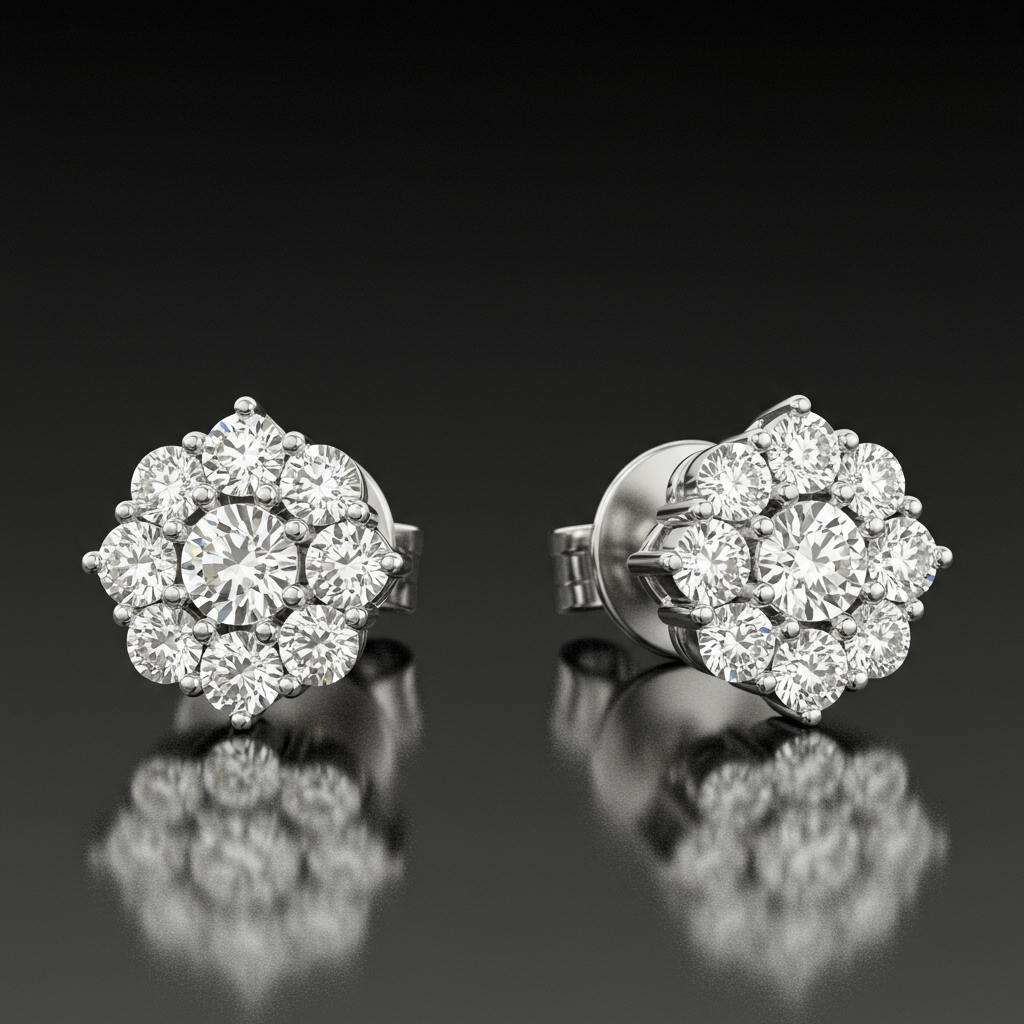 These exquisite platinum earrings redefine everyday luxury, showcasing a stunning cluster arrangement of brilliant-cut diamonds. Crafted in high-purity Platinum 950, the design features meticulous prong settings that maximize light reflection and sparkle. The total 0.55 carats of VVS clarity diamonds ensure exceptional brilliance and lasting value. These timeless studs are perfect for adding a touch of sophisticated glamour to any wardrobe, making them an essential addition to a modern jewelry collection.