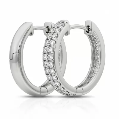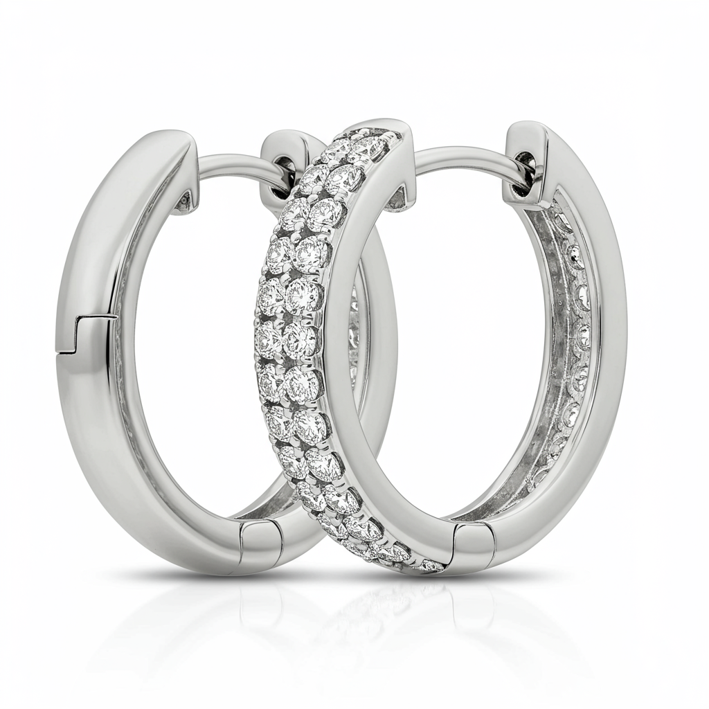 These exquisite ring-type earrings, crafted in luxurious 18KT white gold, define sophisticated minimalist glamour. Each hoop is meticulously set with brilliant VVS diamonds, catching light with every movement. Their comfortable huggie design ensures they sit perfectly, offering timeless elegance for daily wear or special occasions. This pair represents the pinnacle of modern fine jewelry craftsmanship and design precision.