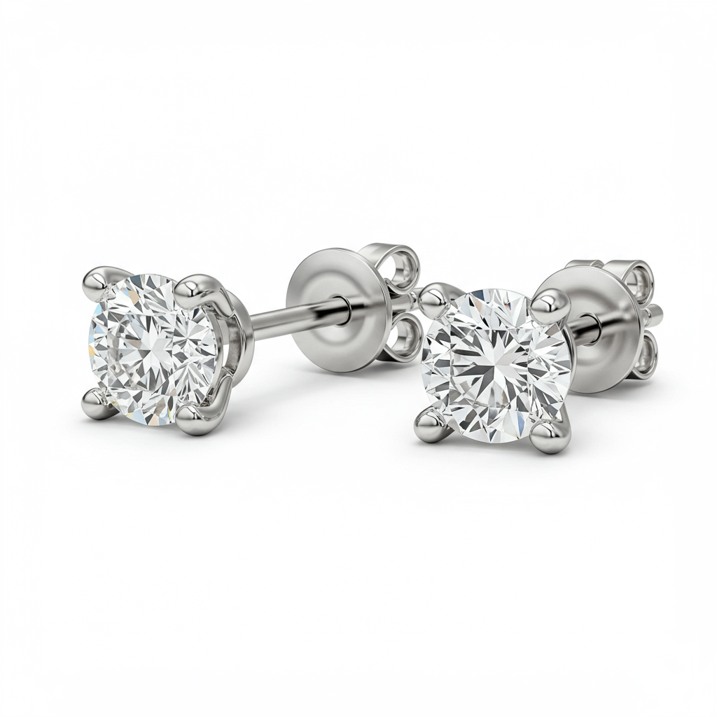 These classic diamond stud earrings are the epitome of essential luxury, designed to offer brilliant sparkle for a lifetime. Featuring perfectly matched, high-clarity round brilliant diamonds, they are secured in an elegant four-prong setting. Crafted in premium 18KT white gold, these versatile studs transition seamlessly from everyday elegance to evening glamour. They are an indispensable addition to any discerning woman's jewelry collection, promising enduring value and timeless style.