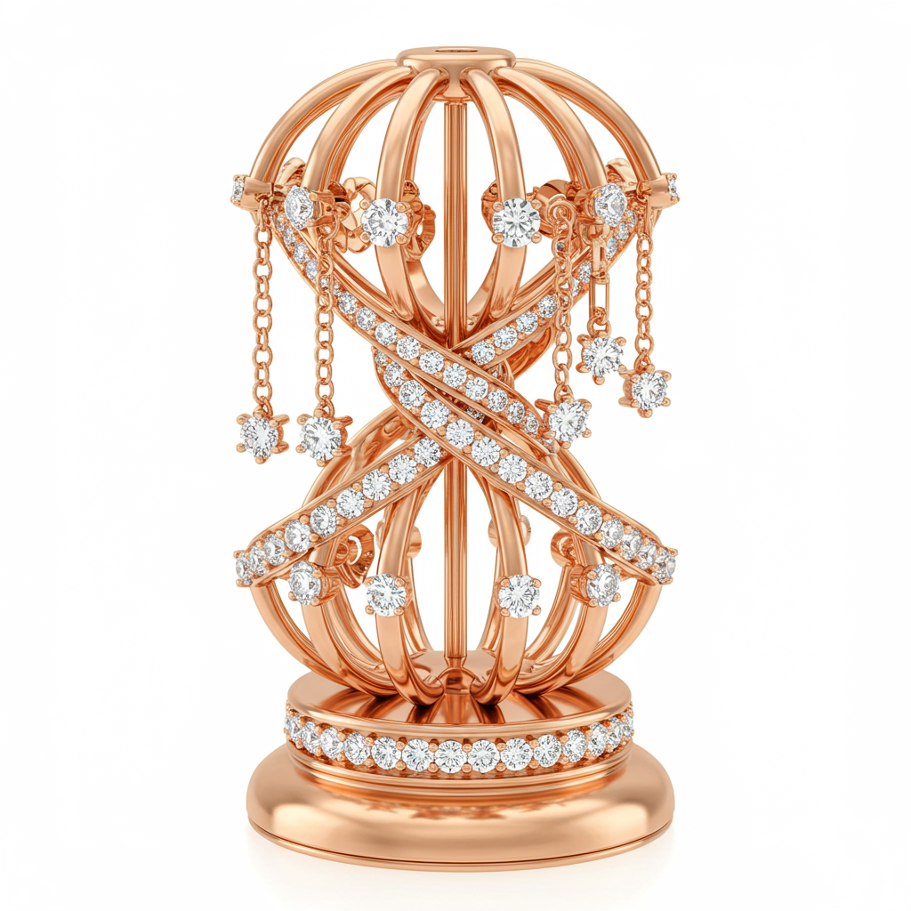 The JewelGravity Earring Organiser is the epitome of functional luxury, crafted meticulously from solid 18KT rose gold. This statement piece offers an elegant solution for showcasing and protecting your most cherished earrings. Designed with precision-drilled slots and accented by brilliant VVS G-H diamonds, it elevates storage into an art form. Its substantial weight and flawless mirrored finish make it a timeless vanity essential, ensuring your jewelry is always presented beautifully.