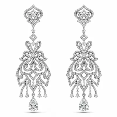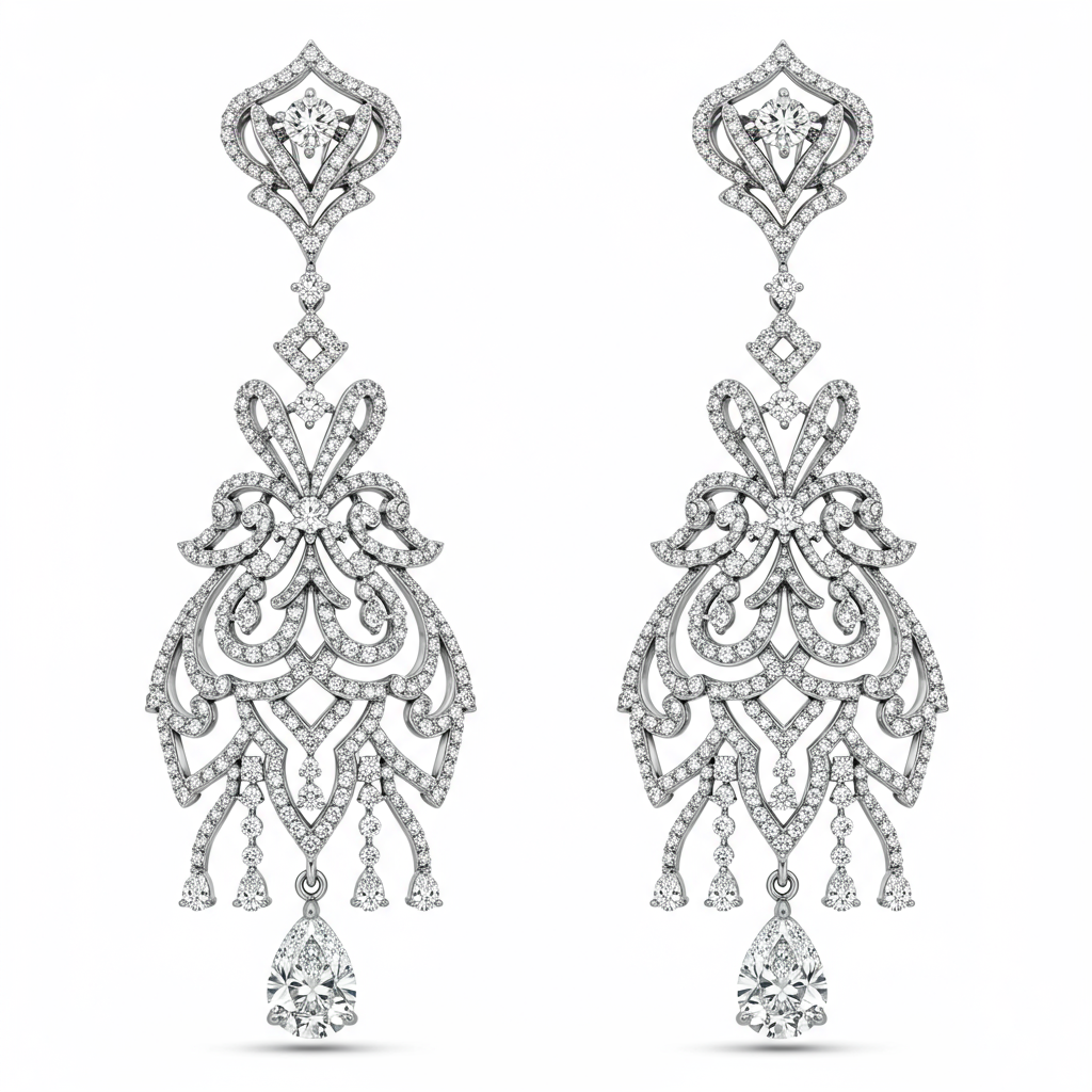 These exquisite chandelier earrings are meticulously crafted for the most glamorous occasions, serving as the ultimate accessory for a grand gown. Cascading articulated links, set in brilliant 18KT white gold, create dynamic movement that catches the light from every angle. Over three carats of VVS and VS diamonds are seamlessly integrated into a complex pave setting, ensuring unparalleled radiance. They offer a breathtaking statement of luxury and sophistication, perfect for red carpet events and black-tie galas.