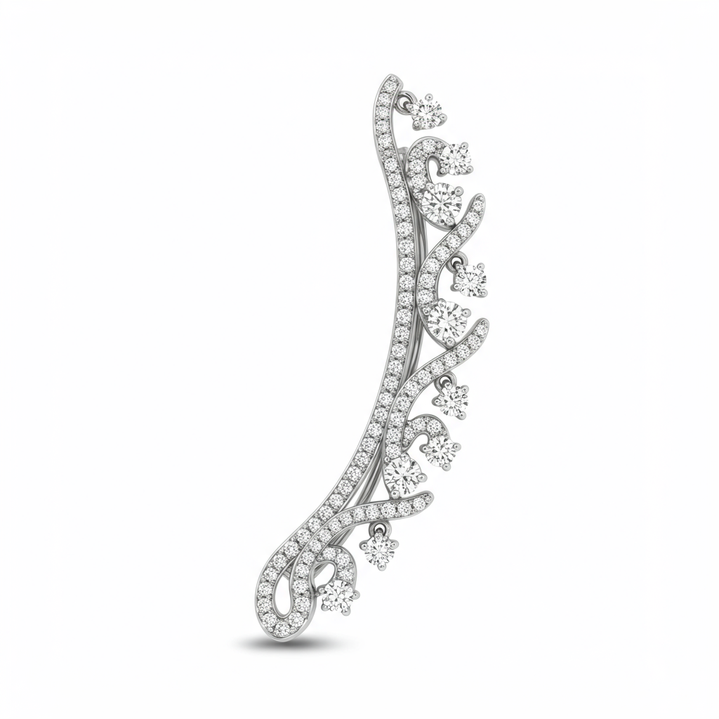 These exquisite full ear earrings, often called ear cuffs or climbers, are designed to trace the entire curve of the earlobe and cartilage. Crafted meticulously in 18KT white gold, the sophisticated setting maximizes light return, creating a dazzling effect. A continuous stream of VVS round brilliant diamonds ensures unparalleled sparkle and luxury. This contemporary design offers dramatic elegance, perfect for high-fashion events or making a bold statement. They are secured comfortably to provide all-day wearability without compromising glamour.