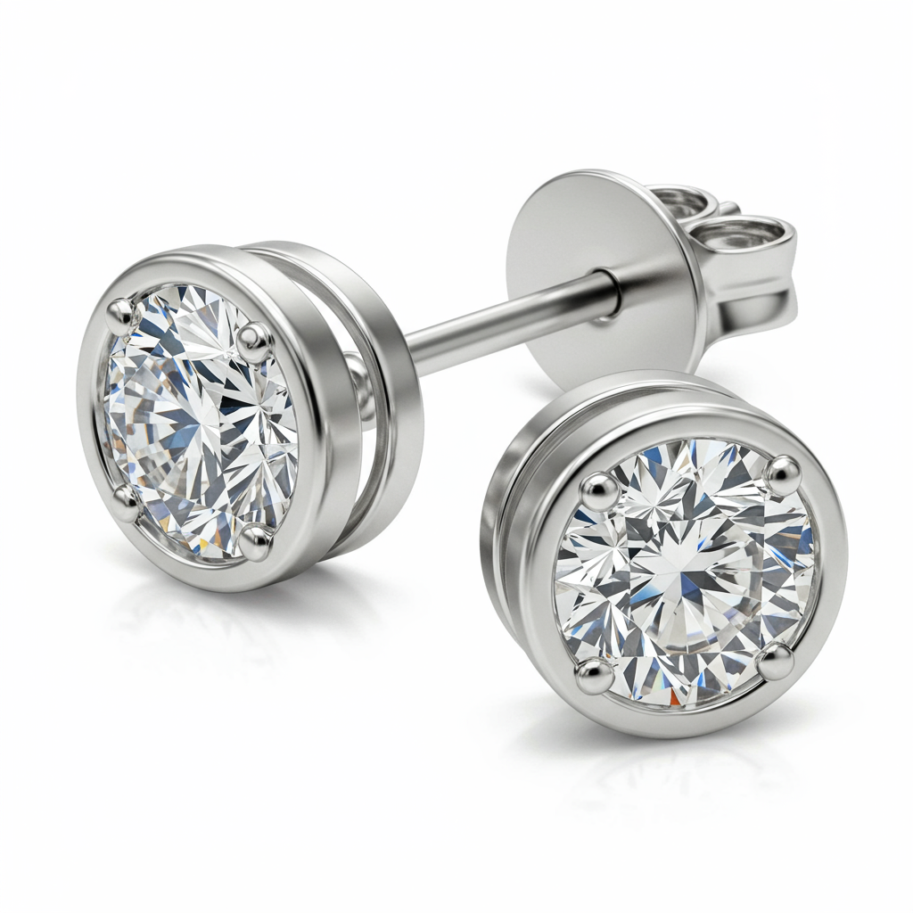 Inspired by timeless masculine elegance, these stunning stud earrings feature substantial round brilliant diamonds set in robust 18KT white gold. The design prioritizes brilliance and security, ensuring the flawless VVS stones capture maximum light. Their classic yet impactful size makes them versatile for daily wear or evening events, offering a refined statement of luxury. These earrings embody sophistication and unparalleled craftsmanship for the discerning wearer.