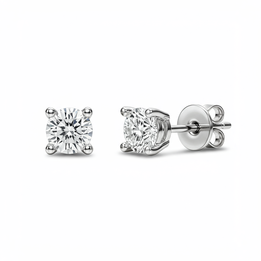 These classic solitaire stud earrings epitomize timeless elegance, featuring brilliant round diamonds secured firmly in a refined 18KT white gold basket setting. Designed for versatility, this sophisticated pair maximizes the fire and brilliance of the central gems, making them perfect for both daily wear and special occasions. The robust four-prong mounting ensures maximum light exposure and security. This is an essential cornerstone for any high-end fine jewelry collection, offering enduring value and stunning visual appeal.