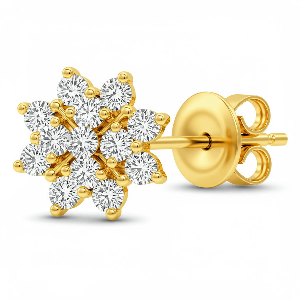 The '1 Gram Earrings' collection redefines subtle elegance, offering maximum brilliance with minimal weight. These luxurious stud earrings are meticulously crafted in 18KT yellow gold, featuring a dazzling cluster of VVS diamonds set in a secure micro-pave arrangement. Designed for everyday comfort, they provide an effortless sparkle that transitions seamlessly from day to evening wear. This design proves that exceptional quality and profound sophistication can reside in a truly lightweight form.