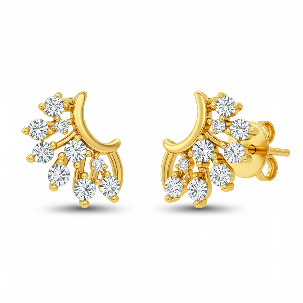 Introducing the perfect daily wear accessory, these 1 gram gold earrings define minimalist elegance. Crafted in shimmering 18KT yellow gold, the delicate design offers maximum impact with negligible weight. Featuring a cluster of precision-set VVS diamonds, they capture light beautifully, providing brilliant sparkle. This new design blends contemporary aesthetic with classic wearability, making them an indispensable addition to any fine jewelry collection.