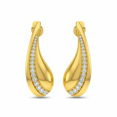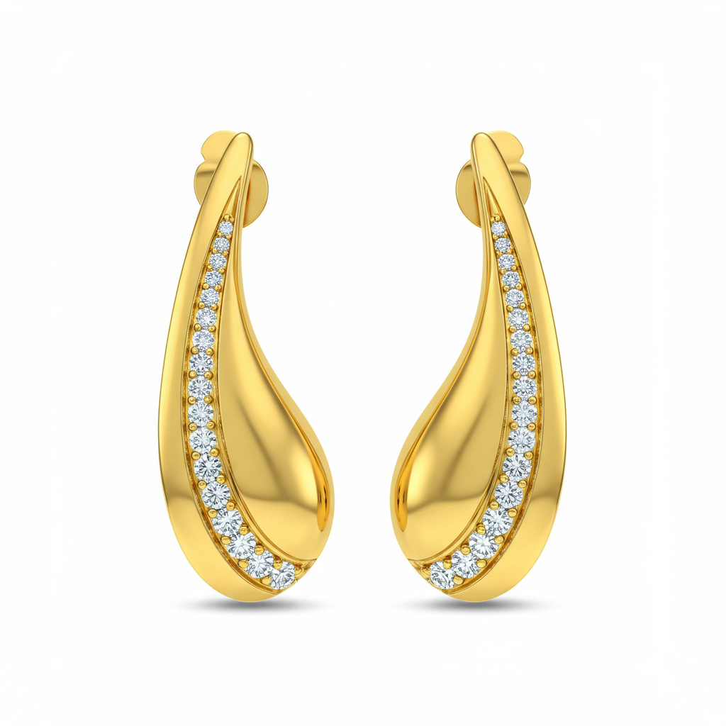 These statement drop earrings reinterpret classic brass aesthetics using luminous 18KT yellow gold. Their fluid, architectural silhouette is meticulously polished, ensuring a dazzling play of light with every movement. Adorning the central form are brilliant-cut diamonds, set to maximize their VVS clarity and vibrant sparkle. This sophisticated design provides an elegant fusion of modern artistry and timeless luxury, perfect for any gala or evening wear.
