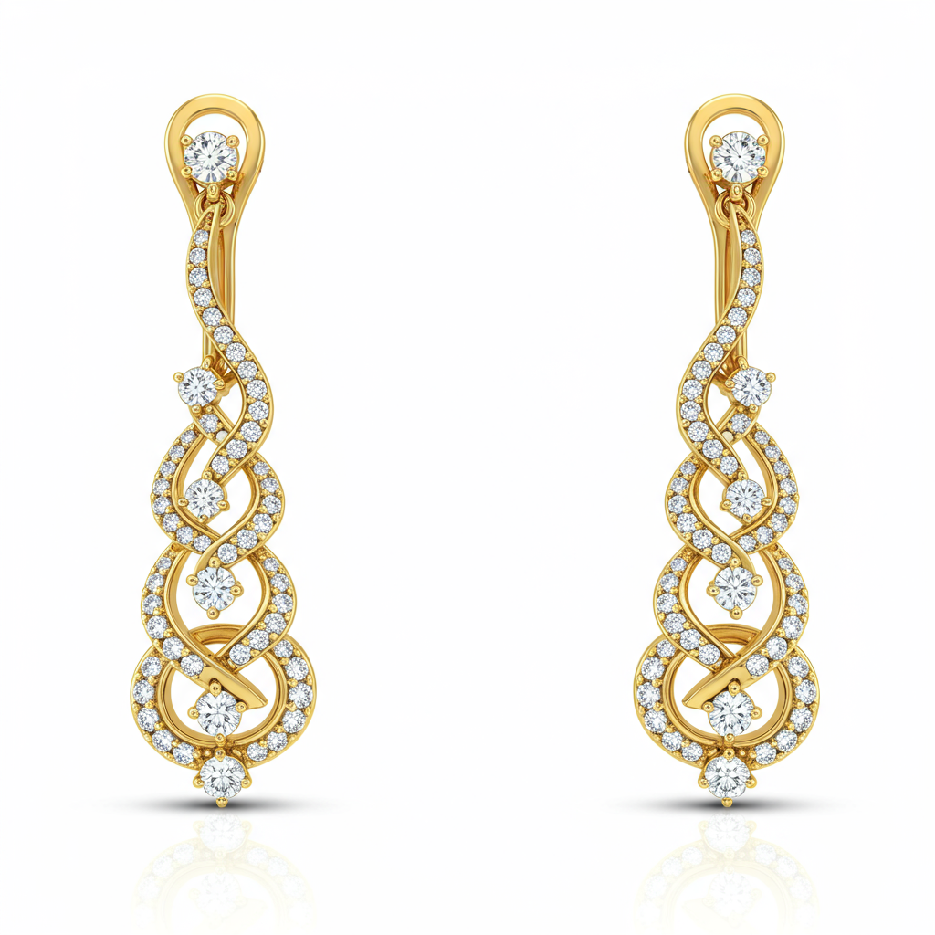 These sophisticated Fancy Long Gold Earrings are designed to dramatically elongate the neck and capture light with every movement. Crafted in radiant 18KT yellow gold, the elegant linear structure features meticulous diamond paving. They offer an unparalleled blend of classic luxury and modern geometric design, perfect for high-profile events or elevated everyday wear. The secure omega back clasp ensures they remain dazzling and comfortable throughout the day.